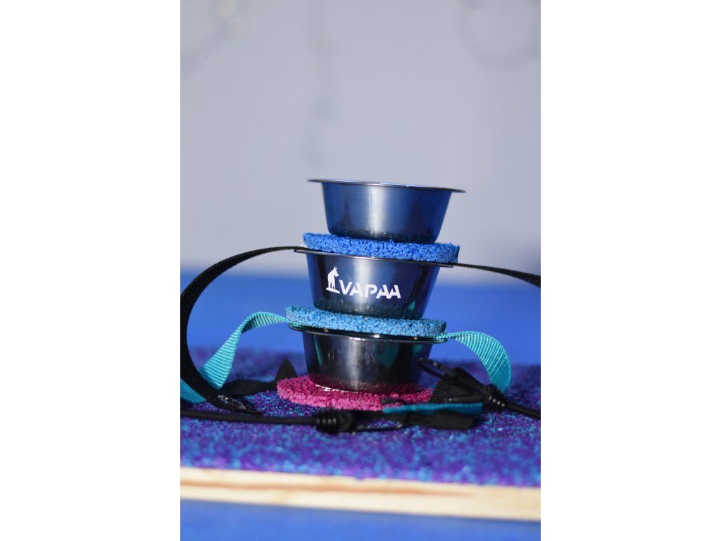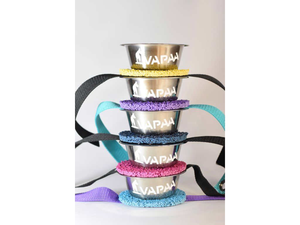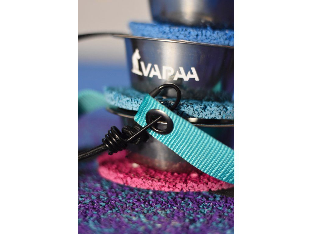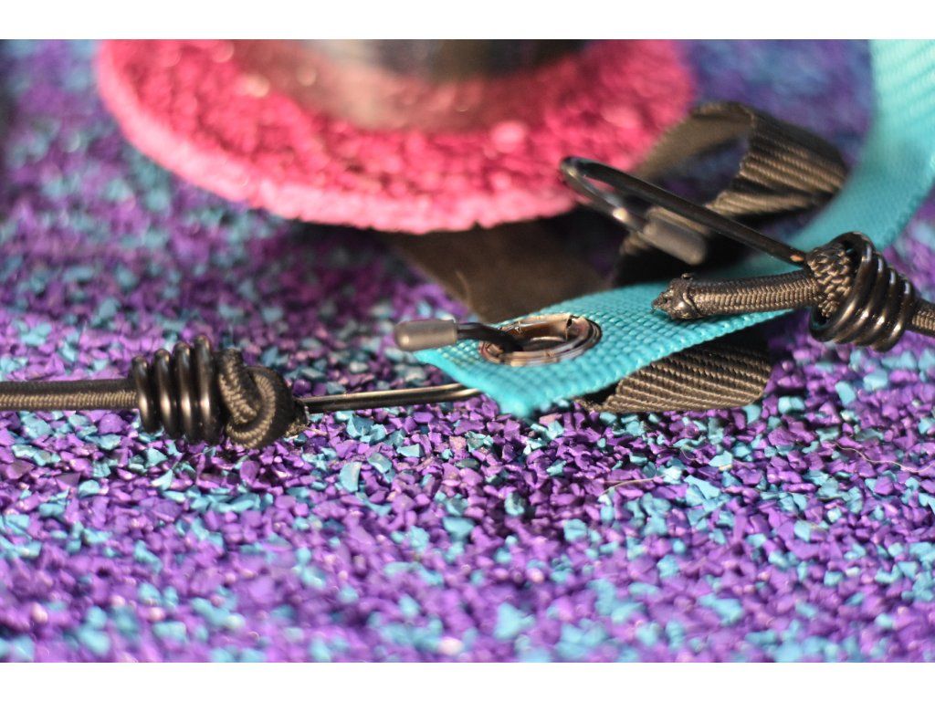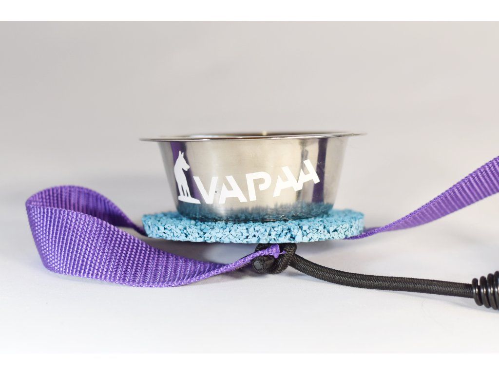 A bowl mounted on a tartan target designed for precise contact training on the seesaw. The strong elastic fastening keeps it securely in place during obstacle movement. Ideal for motivation, rewarding and building confident contact behavior.